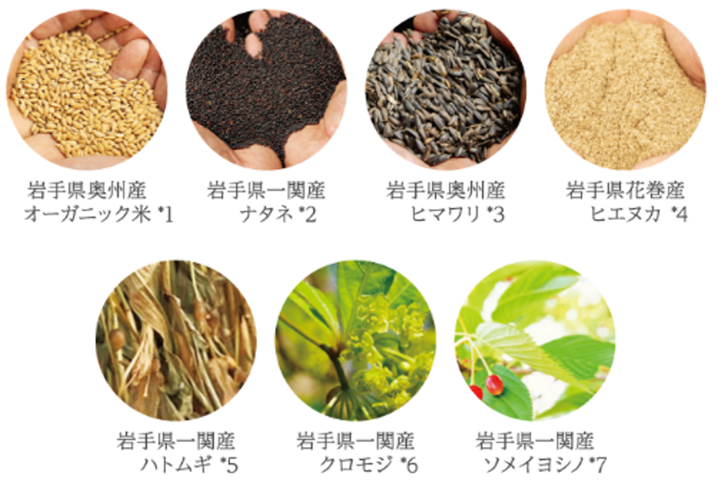 その他、菜種、クロモジ、ソメイヨシノなど、岩手に根付いた植物を採用しています。