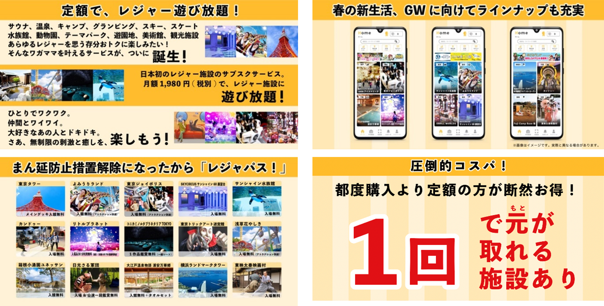 日本初(※)のレジャーのサブスク・年パスサービス「レジャパス!」4月8日(金)サービス利用開始!!