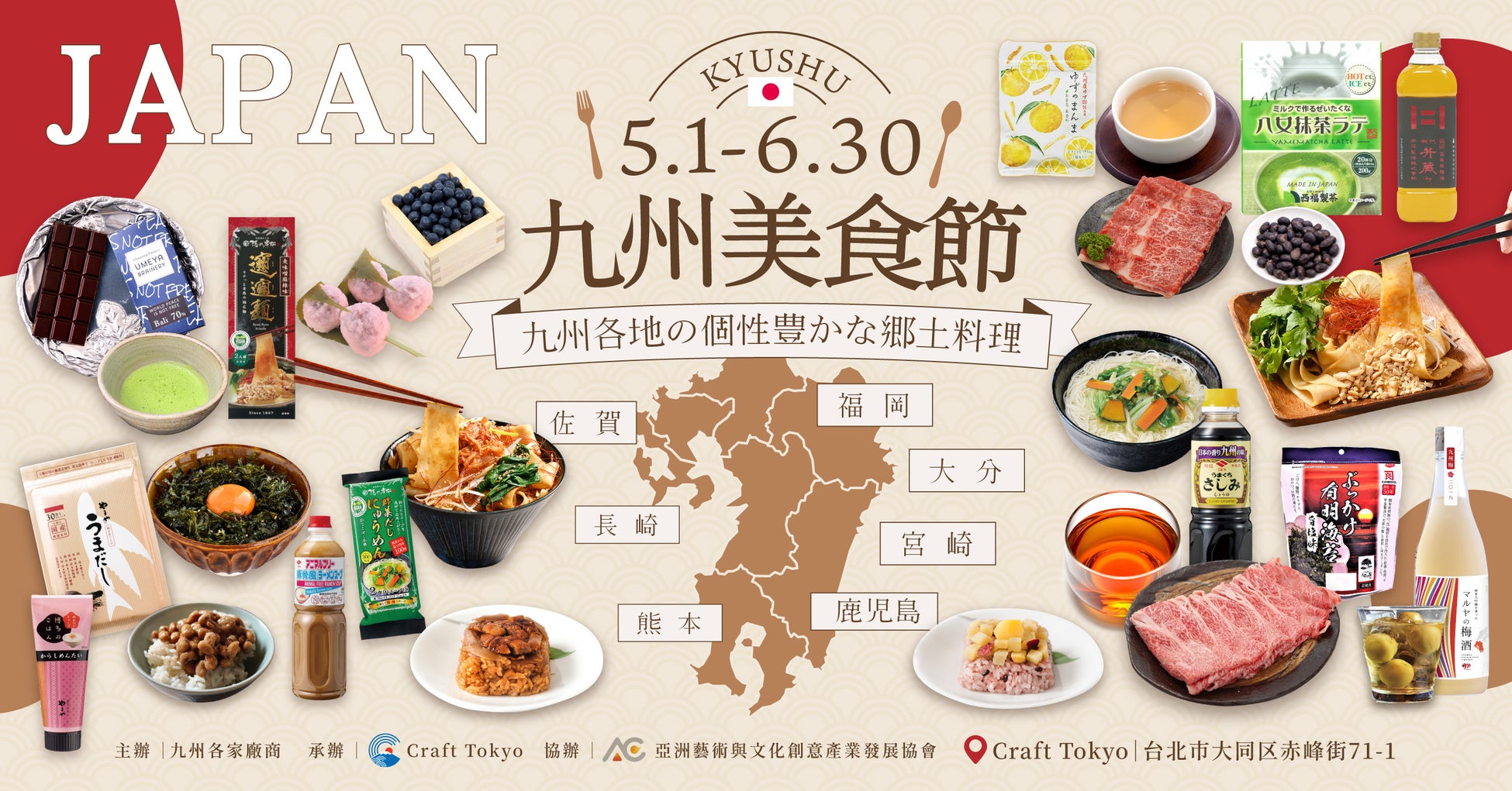 「日本のCraftman(ものづくり)」の海外進出支援を担うCraft Tokyoは、2023年5月1日〜6月30日まで、Craft Tokyo赤峰店にて、九州フードフェスティバルを開催します。