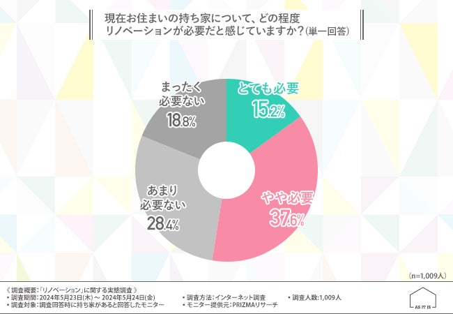 現在住んでいる持ち家についてリノベーションが必要だと感じている方、必要ないと感じている方の割合が明らかになりました。