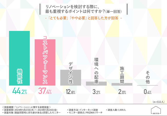 リノベーションをする際に最も重視することは『機能性』や『コストパフォーマンス』