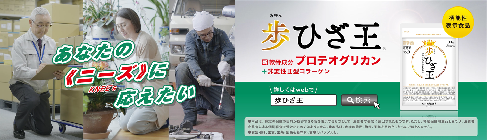 タイトル:歩ひざ王 あなたの《ニーズ》に応えたい 篇(15秒)