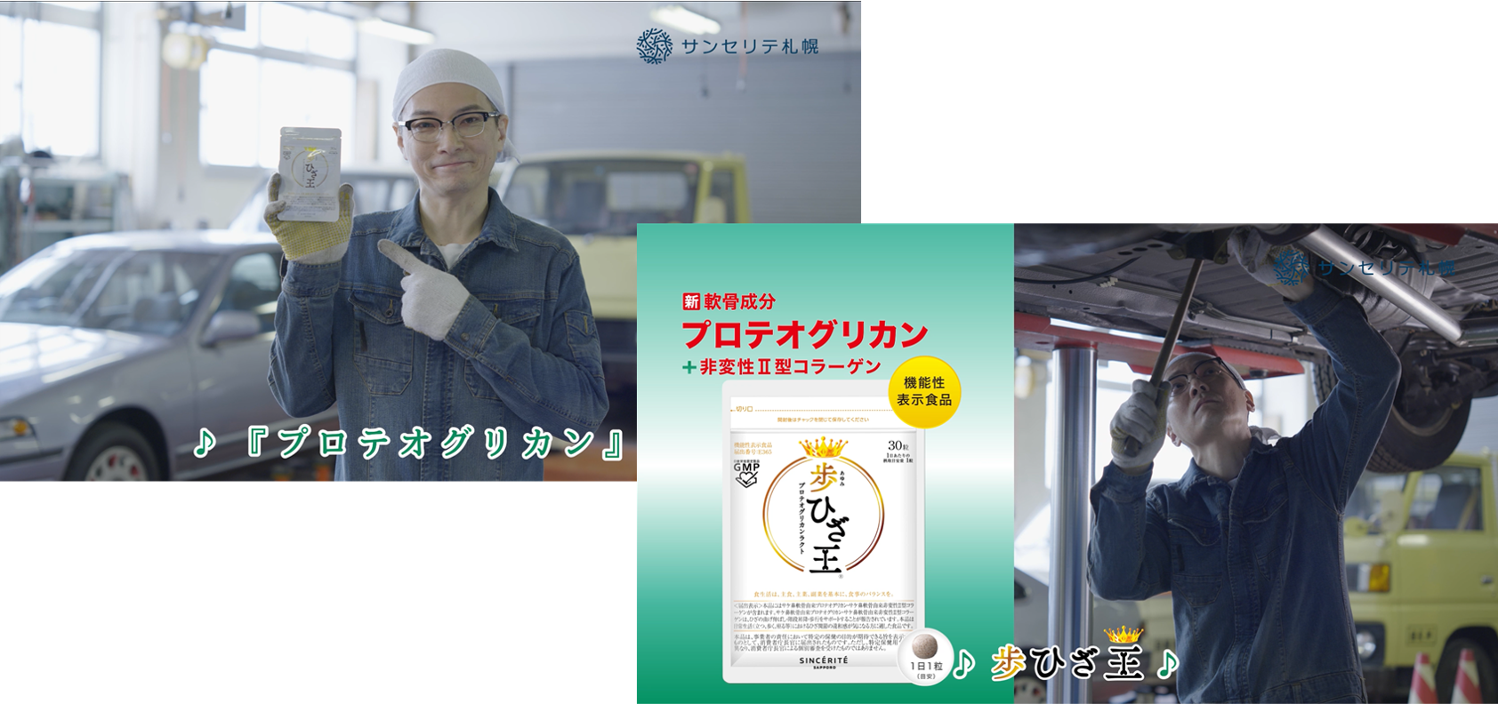 サンセリテ札幌が販売する「歩ひざ王(あゆみひざおう)」は、プロテオグリカン、非変性Ⅱ型コラーゲンを配合したサプリメント。ひざの曲げ伸ばし、階段昇降、歩行をサポートする機能性表示食品※。