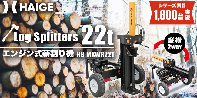 D2Cメーカー「HAIGE(ハイガー)」がエンジン薪割り機「HAIGE LOG SPLITTERS」シリーズのラインナップを拡充。直径61cmの木も破砕できるハイパワー6.5馬力モデルを販売開始。