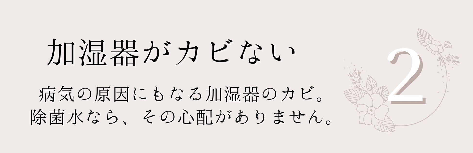 銀イオン水を使用することで、水そのものに除菌効果があるため、加湿器内部のカビの心配がありません。
