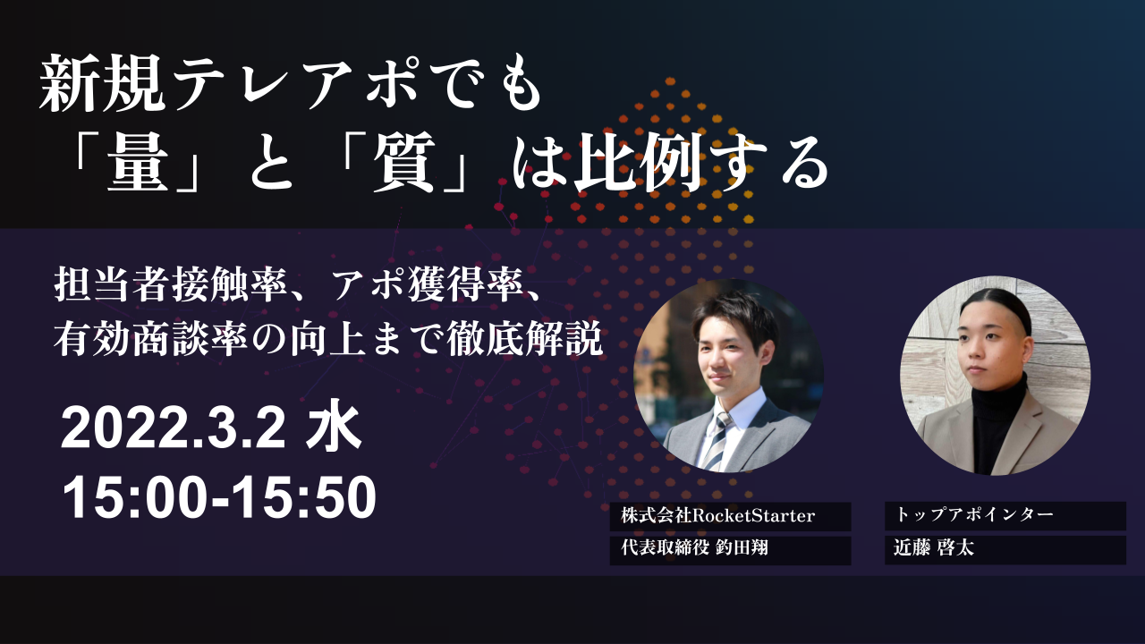 株式会社RocketStarter(ロケットスターター 本社:東京都中央区、代表取締役 釣田翔)は「トップアポインター集団×仕組み」で事業拡大を加速する営業支援会社です。この度、弊社として過去最大の支援件数となりましたので、取り組んだ事例についてを公開いたします。