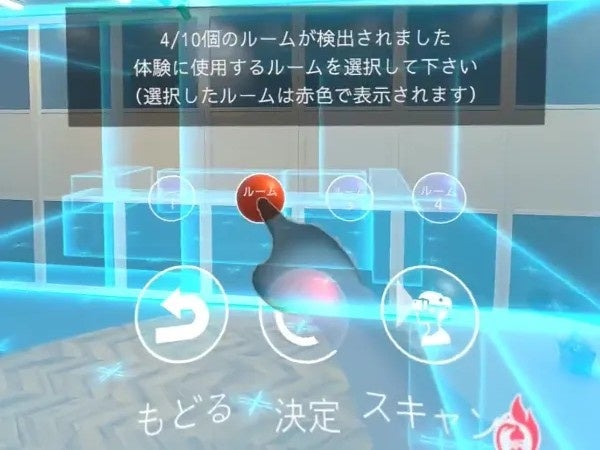 ルームスキャン機能により、自社施設のレイアウトを仮想空間に反映。実際のオフィスや工場内での消火・避難訓練が可能です。
