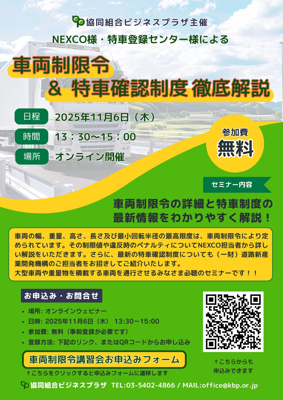 セミナー名: 「NEXCO担当者&特車登録センター担当者による車両制限令&特車確認制度徹底解説」