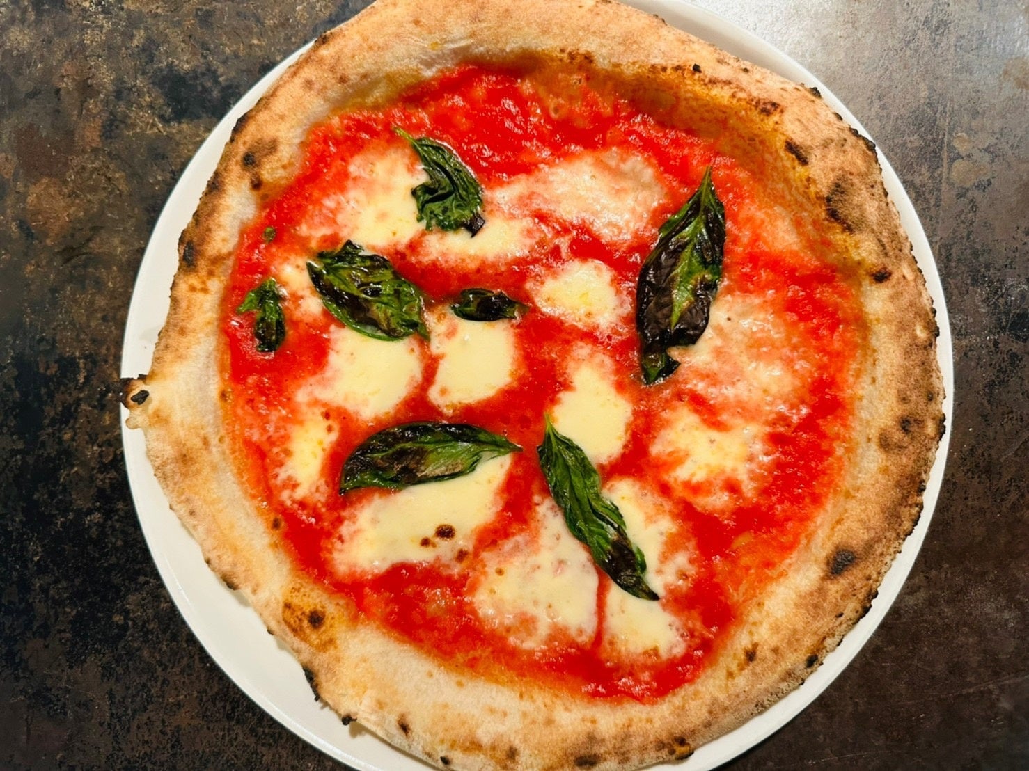 「三谷牧場」は日本では珍しいジャージー牛だけの放牧酪農牧場。搾乳量が少ない、希少なジャージーミルクに乳酸菌と塩だけを加えてつくった「金のモッツァレラチーズ」を、スタンダードかつシンプルなマルゲリータに。ジャージーミルク特有の風味とコクのあるフレッシュなチーズが焼き上がりに広がります。