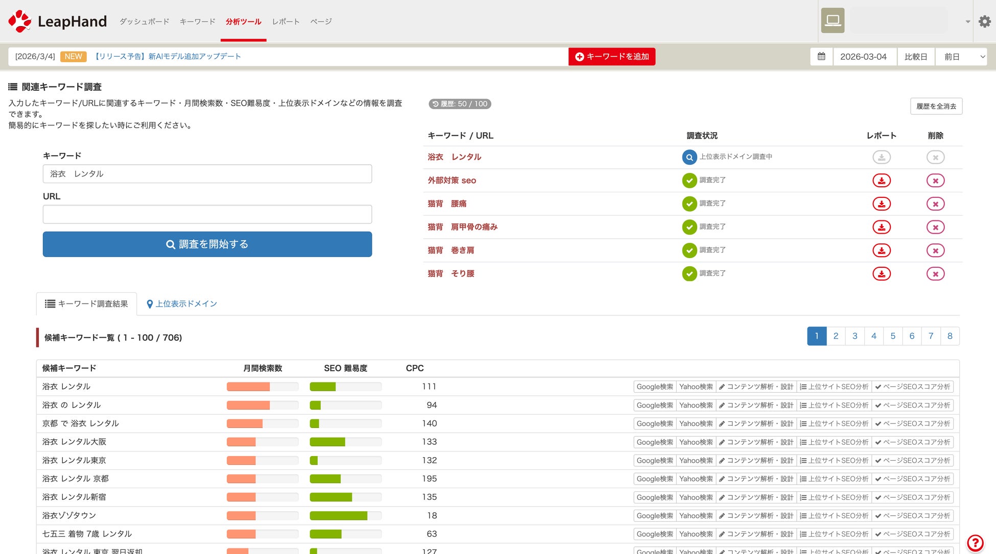 「LeapHand」は、SEO対策・コンテンツマーケティングに必要な機能を一体化した、コンテンツSEO最適化ツールです。