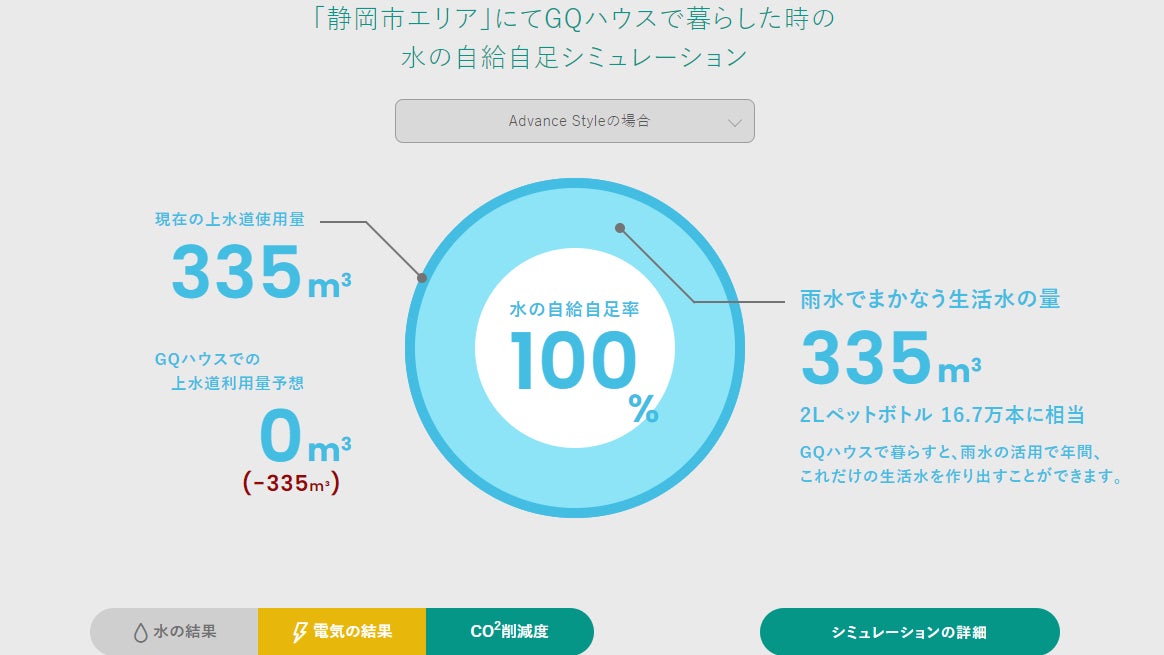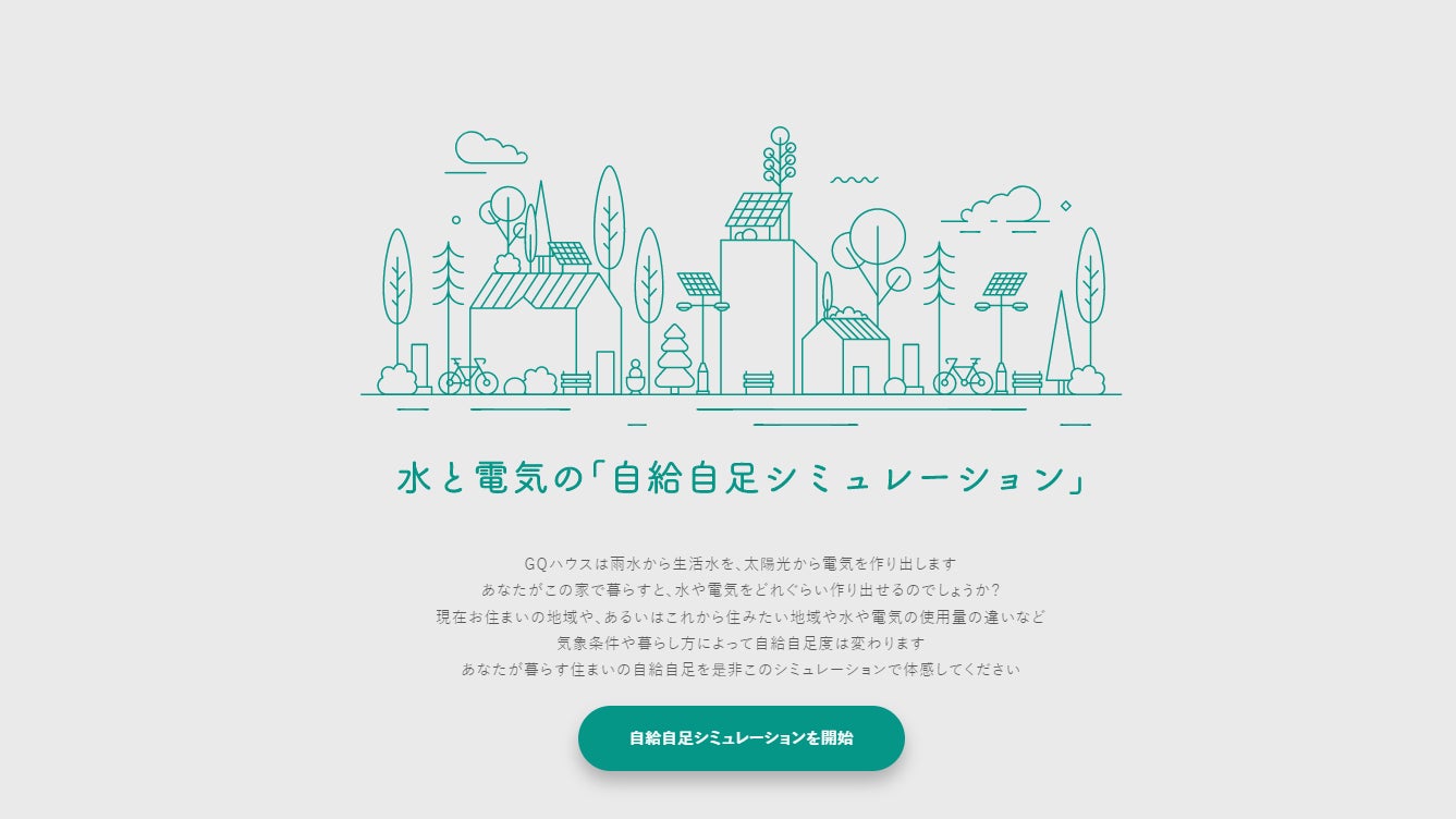 そしてこの度更なる機能として、現在お住まいの地域で、ご家庭のエネルギー使用量から生活水・電気の生成量を試算できる「自給自足シミュレーション」を追加・公開いたしました。