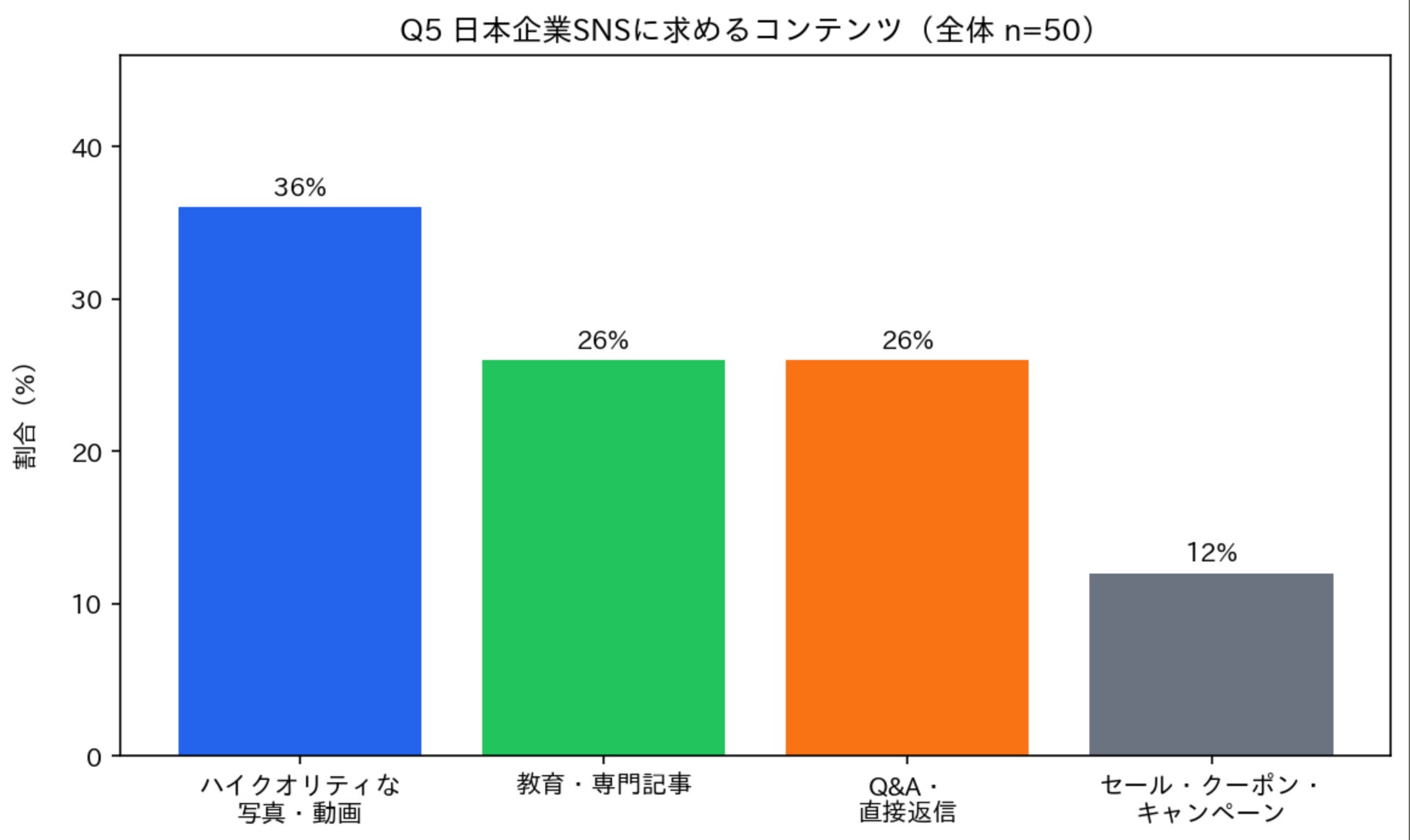 Q5:日本企業SNSに求めるコンテンツ——ビジュアル36%が首位、セール需要は12%に留まる