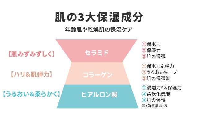 3.肌の三大保湿成分「セラミド」「コラーゲン」「ヒアルロン酸」を贅沢に各3成分!