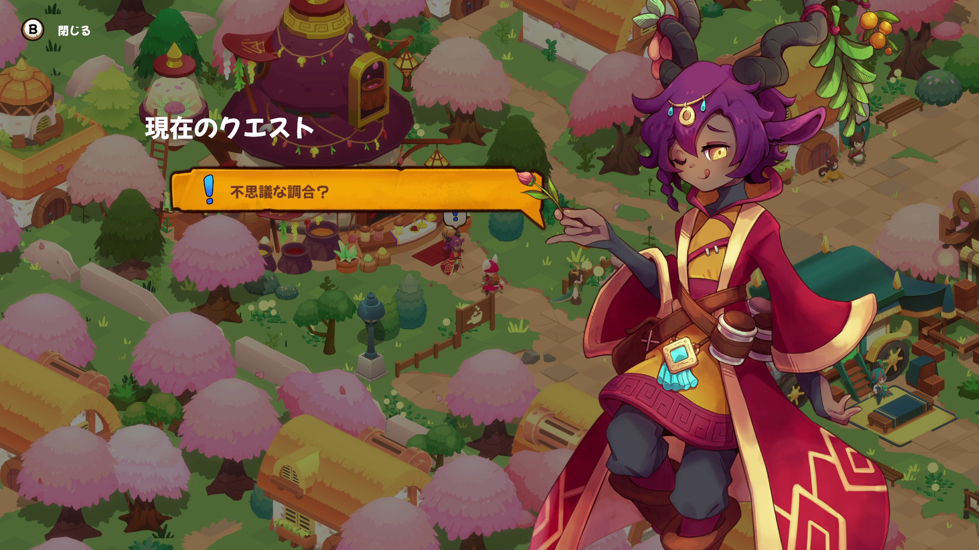 クエストをお持ち帰り-タピオカティー売りのナイチャから、気さくな鍛冶屋のアルダーまで、パエルでは優しくてスパイシーな町の人たちと仲良くなることができます。ダンジョンに潜って、町の人たちが必要としているアイテムを探しましょう。ゴールドや新しいアイテム、さらにレシピがもらえるので、料理や冒険の幅が広がります。