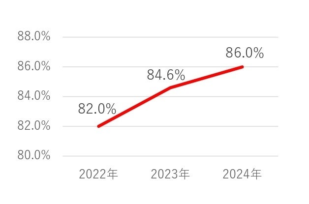 昨年は車検・整備業界における不祥事が相次いだことから、業界全体に注がれる目が大変厳しい年となりました。そうしたなか、車検館が3年連続で過去最高の業績を記録した原動力は極めて高いリピート率にあります。下表のように、好調な業績と足並みをそろえるように、リピート率も上昇を続けています。