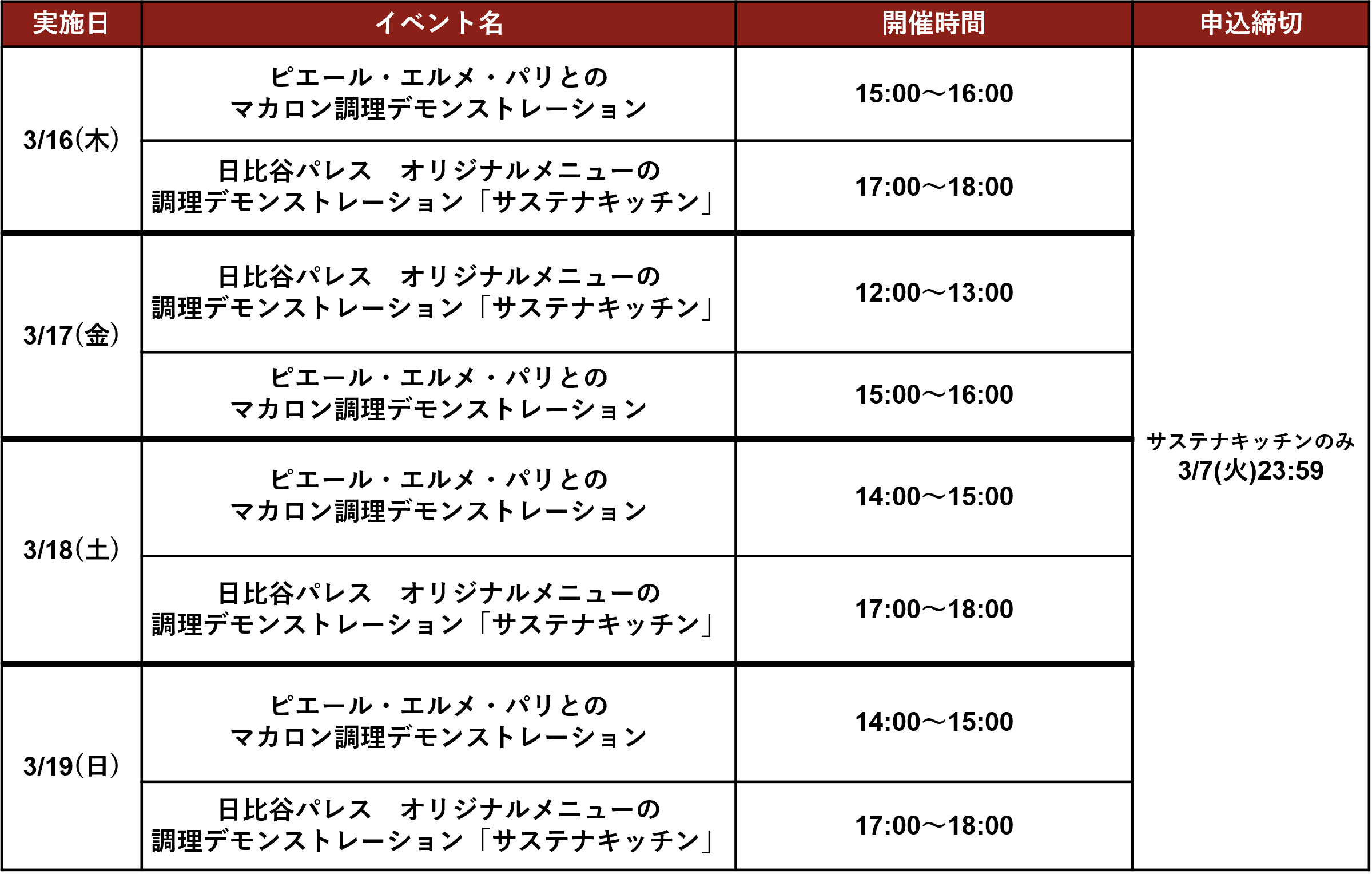 ピエール・エルメ・パリの春仕様マカロンや、日比谷パレス考案のサステナブルなオリジナルメニューの調理デモンストレーションを実施