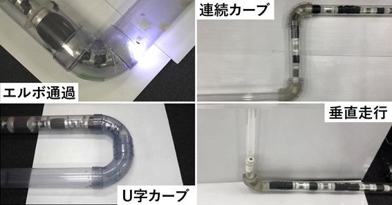 ソラリスのミミズ型ロボットは、ミミズのぜん動運動を模倣し、人間や他のロボット機構では侵入が困難な細管内の走行および映像による可視化を実現しています。この技術により、従来技術では困難だった小口径配管内(内径100mm以下)の自立走行や90度の曲がりが多い配管内や垂直方向の走行が可能であり、これまで確認できなかった配管内の状態を把握することが可能となり、効果的な配管内清掃が実現可能です。