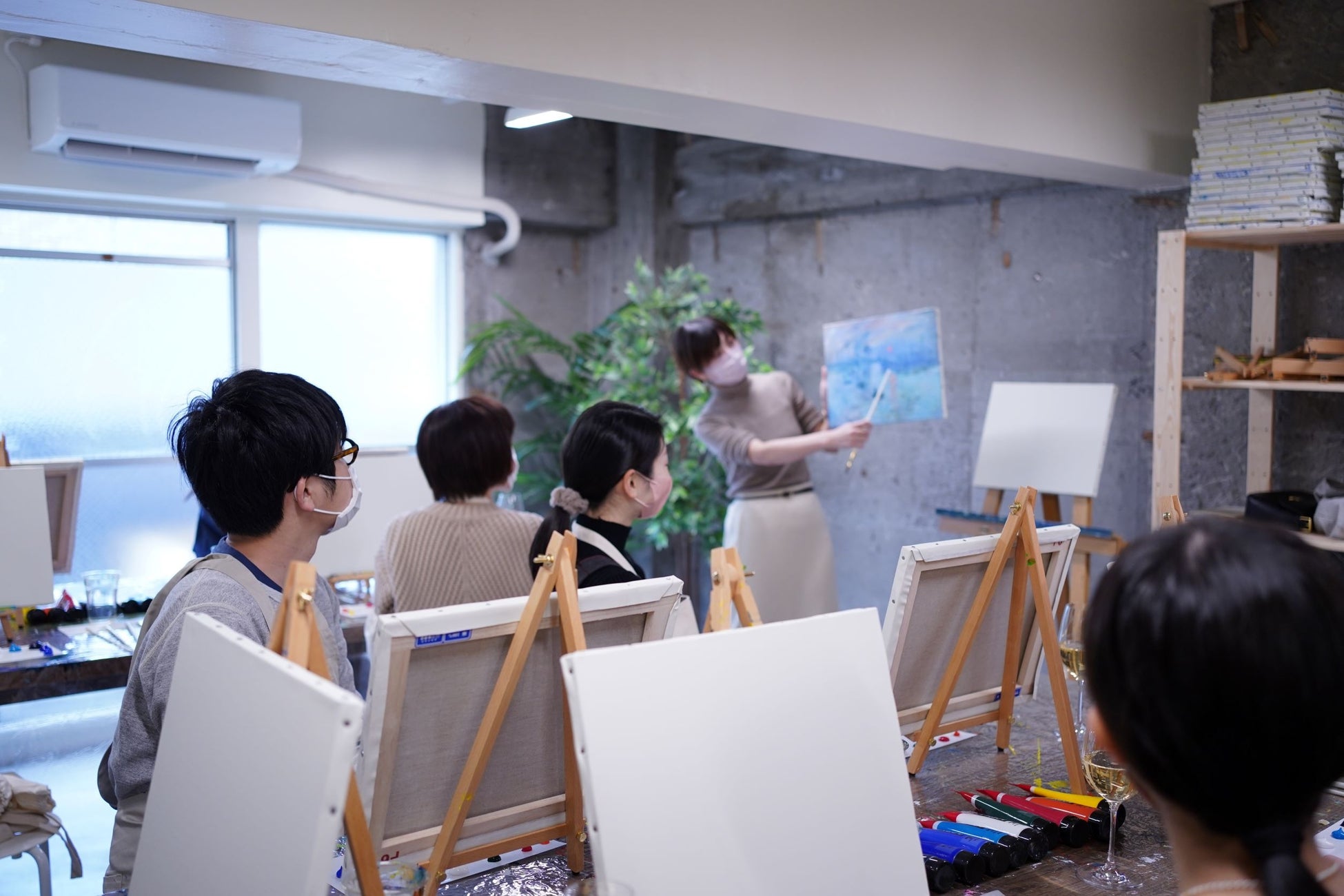 ・新作画題として、東京でも大人気のルノワール「桃の静物画」、ゴッホ「星月夜」、特殊なインクとドライヤーを使って制作を行う初心者向け抽象画「アルコールインクアート」などの新作もご用意しております。