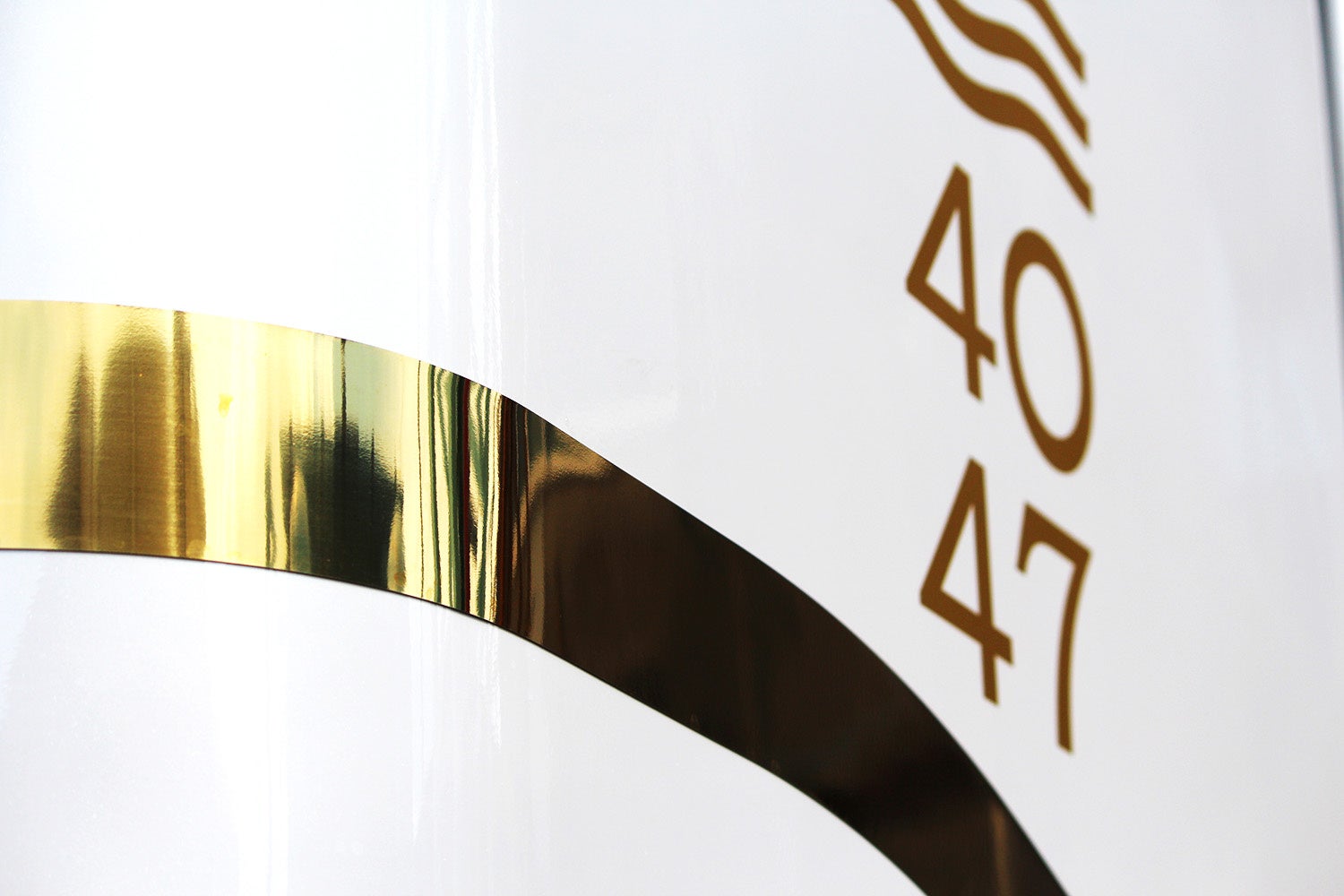 JR九州様の観光列車「ふたつ星4047(よんまるよんなな)」は海岸線を疾走し、美しい景色を堪能できる車両です。 海岸線ということもあり、海塩粒子の影響が多く出てくることが予測されます。 そこで、海水への絶対耐性を持つチタンをミラー加工し、IPゴールドでさらに蒸着した耐久性と機能性、意匠性を兼ね備えた黄金ライナーを提案し、ご採用いただきました。 また、チタンの比重は4.51と非常に軽量でさらに、比強度が高いことから軽量で強靭な金属部品となります。 自然環境の中を疾走する車両には適した金属特性を持っていることも重要な要素であります。