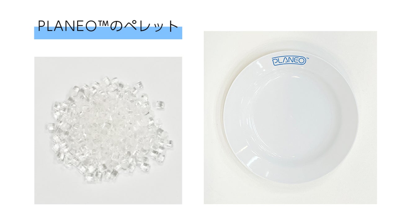 独自の環境対応プロダクトソリューションとして、既存の100%植物由来プラスチックの代表格であるPLA(ポリ乳酸)に樹木から抽出される多糖類由来の添加剤を加え、これまで課題の一つであるとされた成型・加工性能を改善した。
