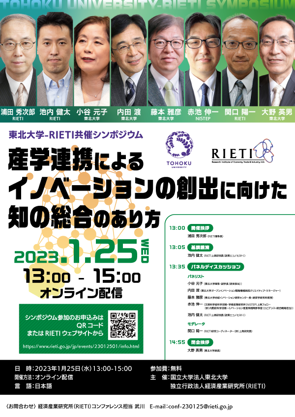東北大学-RIETI共催シンポジウム「産学連携によるイノベーションの創出に向けた知の総合のあり方」