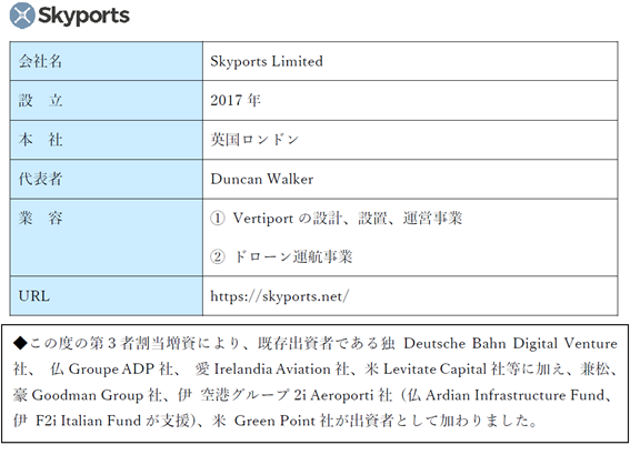 Skyports社との共同事業領域はVertiport設置・運営およびドローン物流にわたることから、それぞれのノウハウ、経験、技術の共有等を通じた相乗効果による飛躍的な事業拡大が期待されます。