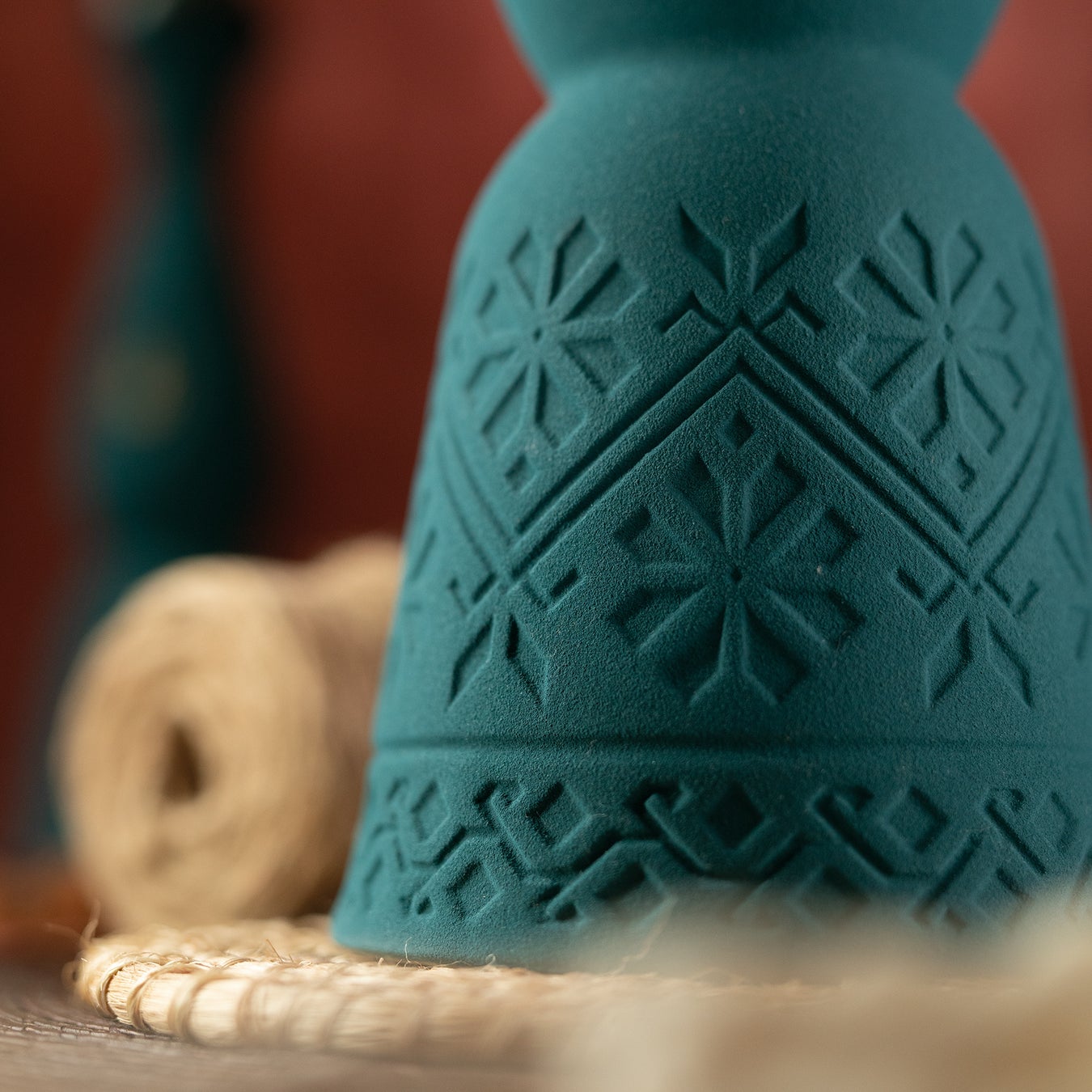 ゲレロ州はメキシコの中でも未だ知られていない魅力が多く、「クラセアスール・メスカル・ゲレロ」は、そんな密やかなゲレロ州の特徴を象っています。デキャンタの緑色はメキシコの伝統文化と永遠の象徴であるジェード石を、デザインはゲレロ州の女性の優しさとリーダーシップ、そして強い精神を表現しています。デキャンタに施された4枚の花びらのグレイビングは古代メキシコの暦石の中で宇宙の源を表す“第5の太陽”から着想を得ています。