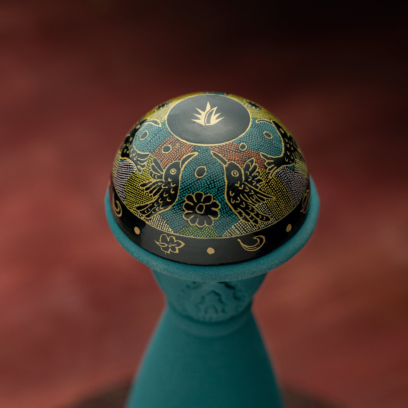 繊細なデザインのキャップはゲレロ州の伝統工芸品で、原産地呼称登録されているオリナラ漆器の技術を使って手づくりされています。太古からメキシコの女性が使っていたヒカラという器からインスパイアされたキャップには、古代メキシコ文化で神の伝達者と信じられていたハチドリの絵を施すことで、この地域との神秘的で美しいつながりを強調しています。ゲレロ州は優れた料理、職人、そして世代を超えて語り継がれる神話のメッカです。クラセアスールはこの製品を通して、メキシコ文化と深いつながりをもつゲレロという土地の魅力を世界に発信していきます。