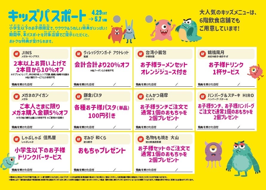 小学生以下のお子様が対象。各店舗にてパスポートの提示が必要です。