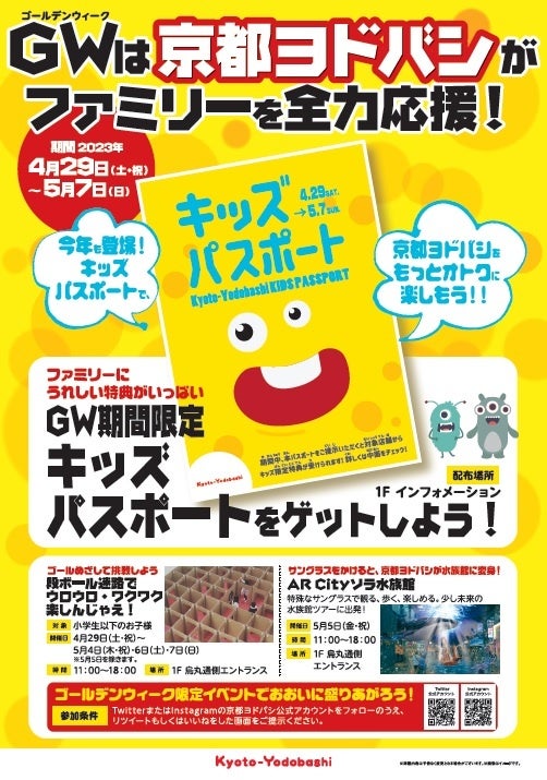 お子様連れ必見のお得なキッズパスポート&楽しいアトラクション。今年のGWは京都ヨドバシに出かけよう!
