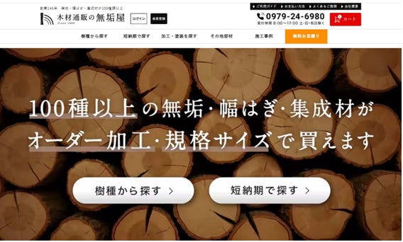 創業140年を超える⽼舗⽊材問屋の⽬利き⼒で、100種類以上の⾼品質の⽊材選びをサポートする通販サイト「⽊材通販の無垢屋」オープン!