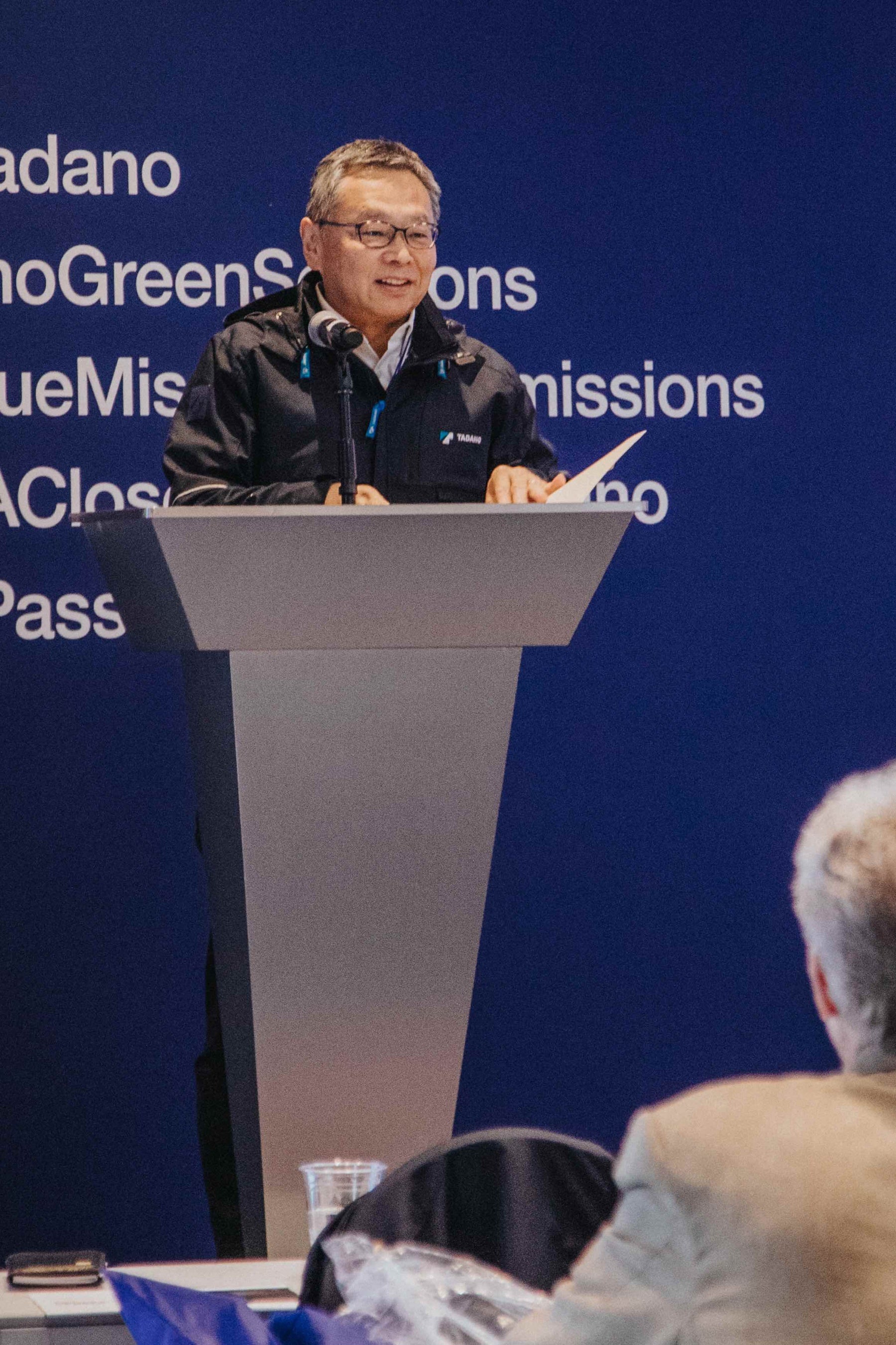 「世界各国で環境ミッションが進められています。この流れは建設機械業界にとっても必然となります。その中で、タダノの新しい使命として『Our True Mission: ゼロ・エミッション』を掲げました。タダノは、2050年までにCO2排出ゼロというミッションを達成するために、「タダノ・グリーンソリューション」として、2030年までに事業活動におけるCO2排出量を25%、製品におけるCO2排出量を35%削減する目標を掲げています。今回CONEXPOで発表する新製品ラインナップは、電動化など環境負荷低減のための革新的な技術を用いながら、ユーザビリティや高い効率性もお客様にお届けできると自負しています。クレーン業界において、本気でこれだけの環境対応をしているのはタダノだけです。」