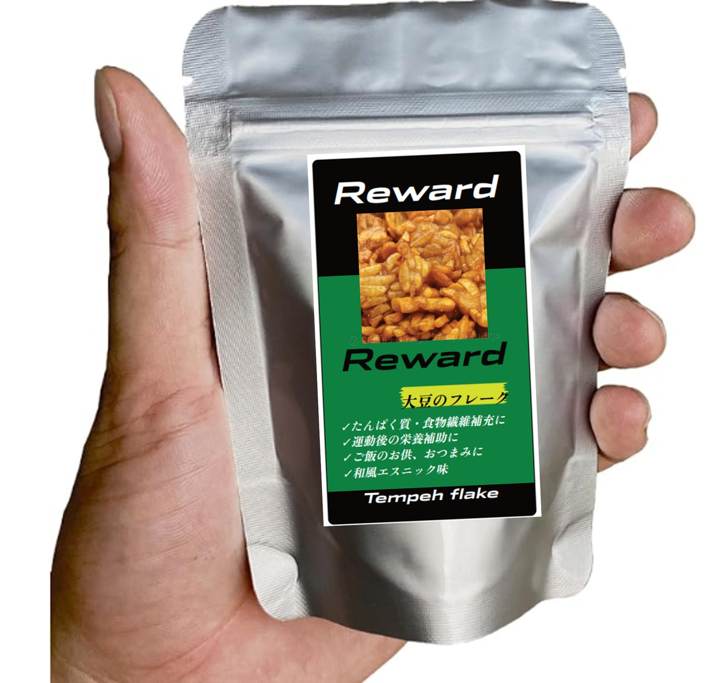 「Reward」は大豆を発酵して作ったテンペのフレークです。原料が大豆の為、たんぱく質の含有量がお肉にも劣らず、同時に食物繊維をはじめとする他の栄養素も摂取できます。そして、女性に嬉しい栄養素がいっぱいです。飽きのこない和風エスニック風味です。