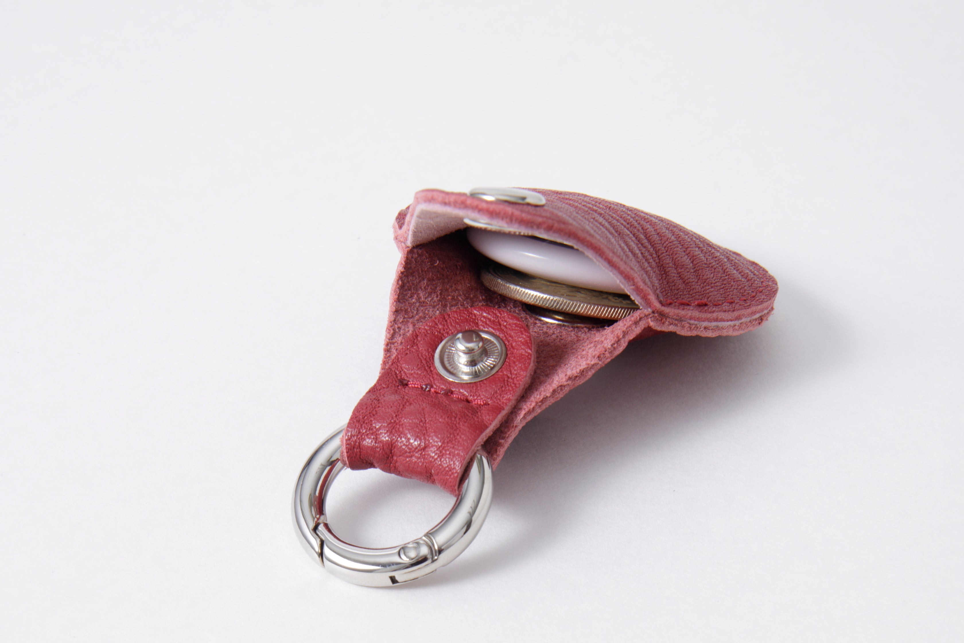 キーホルダーにはエアタグ(別売り)や硬貨を収納出来ます。