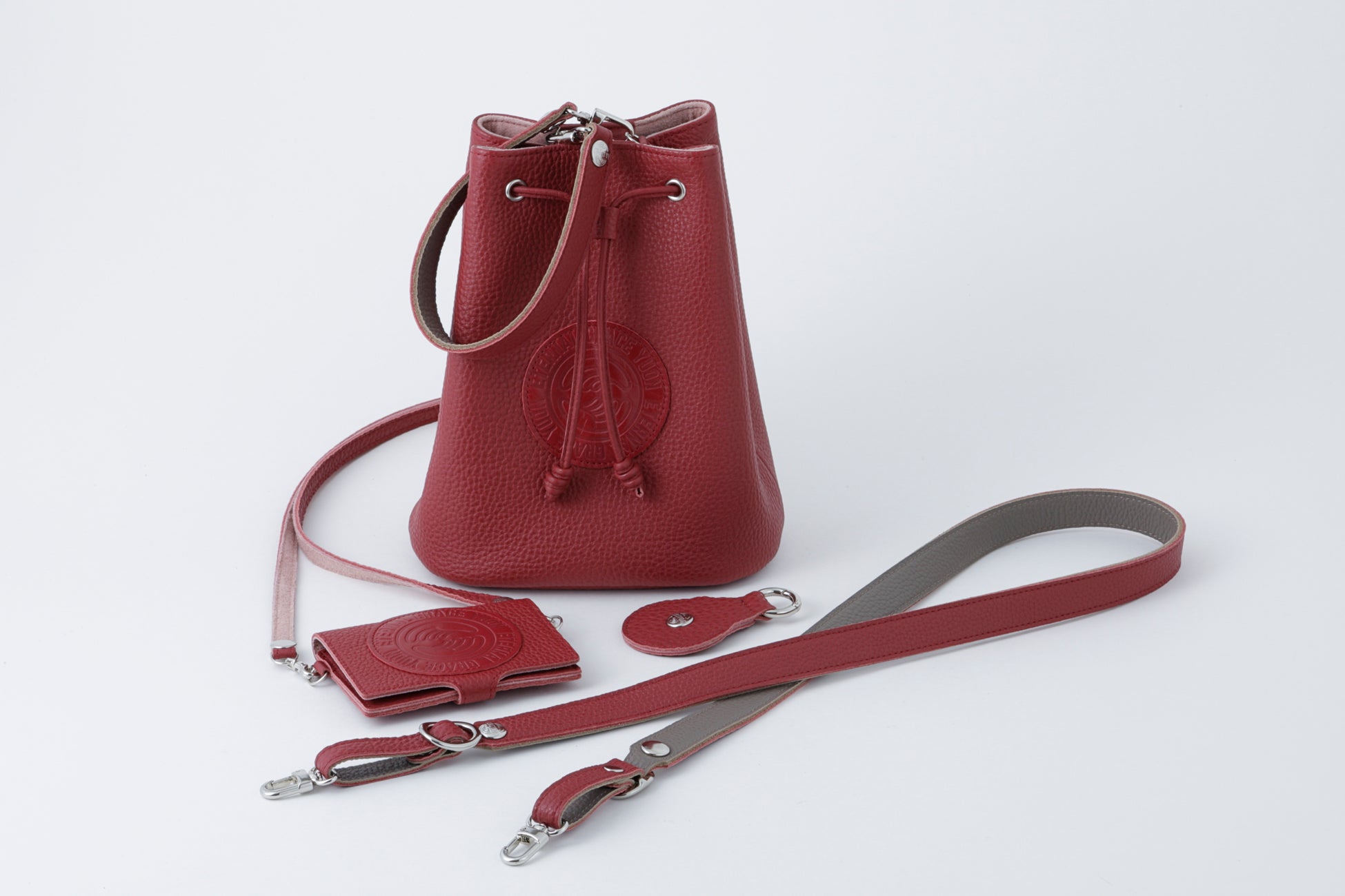 ハンドルとショルダーはバイカラーでシンプルながらもおしゃれなデザインです。カラーコンビネーション:レッドxオーク、ネイビーxグレー