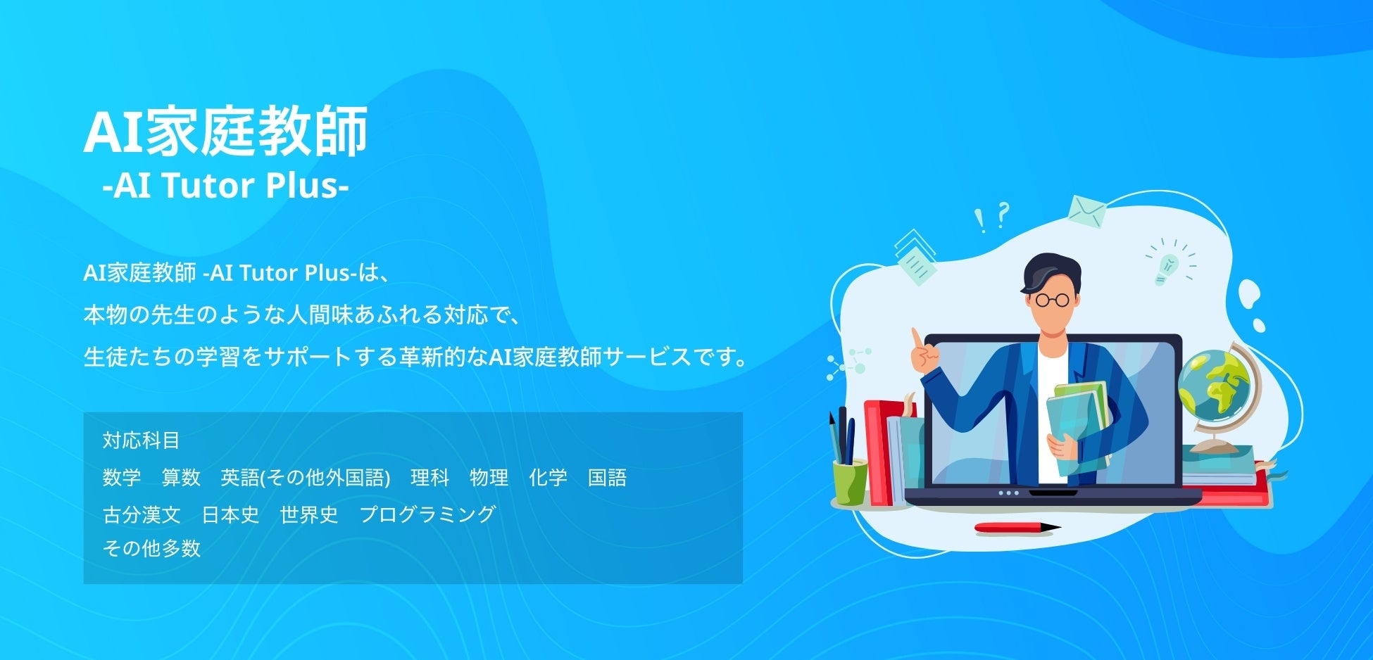 ChatGPT-4を活用した生徒の理解度に応じて難易度を自動的に調整する「AI家庭教師 -AI Tutor Plus-」の提供を開始しました。