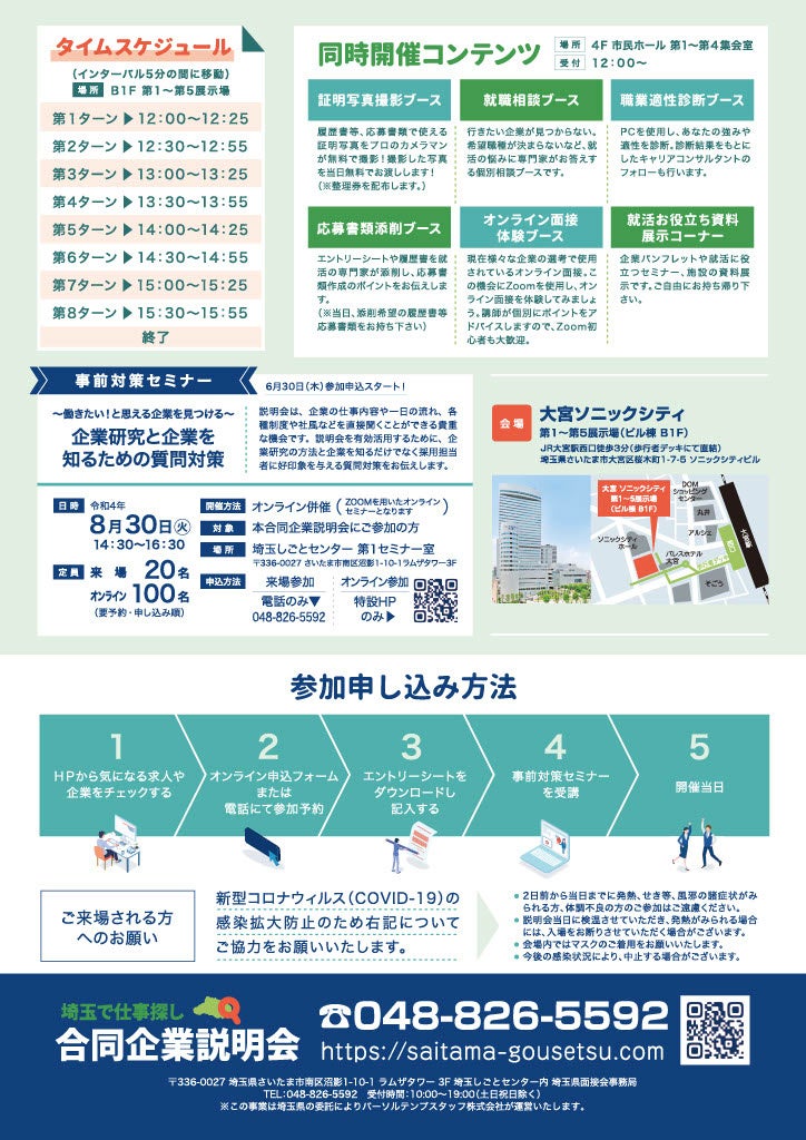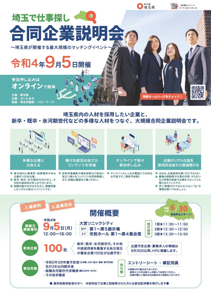 埼玉県内企業100社が参加、求人数は300件以上 令和4年度【埼玉で仕事探し 合同企業説明会】大宮開催