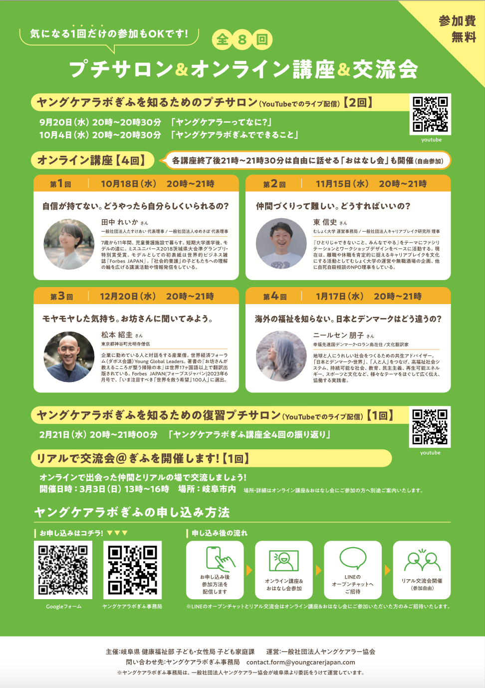 【岐阜県委託事業】ヤングケアラー協会主催のオンラインサロン「ヤングケアラボぎふ」を開催
