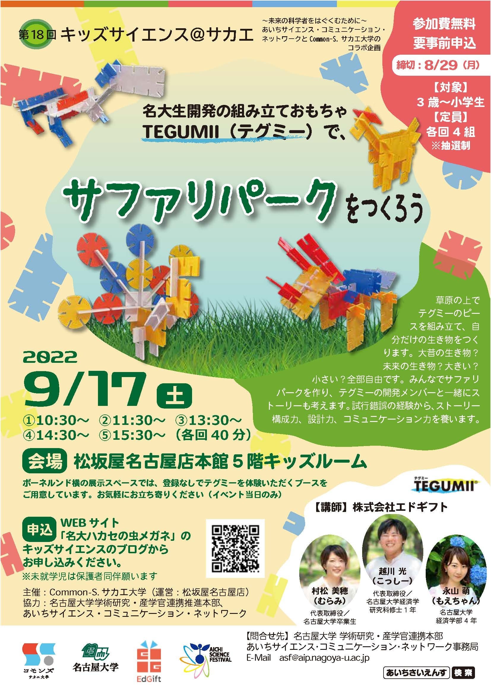 イベントタイトル:松坂屋小学校キッズサイエンス@サカエ 名大生開発の組み立ておもちゃTEGUMII(テグミー)体験ブース※4