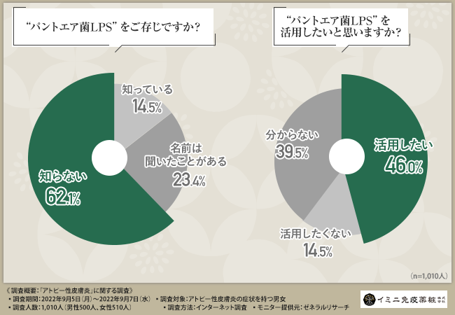【アトピー性皮膚炎】症状を持つ方の半数近くが“パントエア菌LPSを活用したい”と回答するも、パントエア菌LPSの認知度はまだまだ低い実情