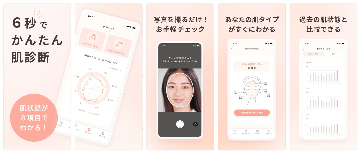 AquaAge社は高いAI技術により、これまで業務機でないと困難であった肌診断をスマートフォンアプリ上で実装しました。