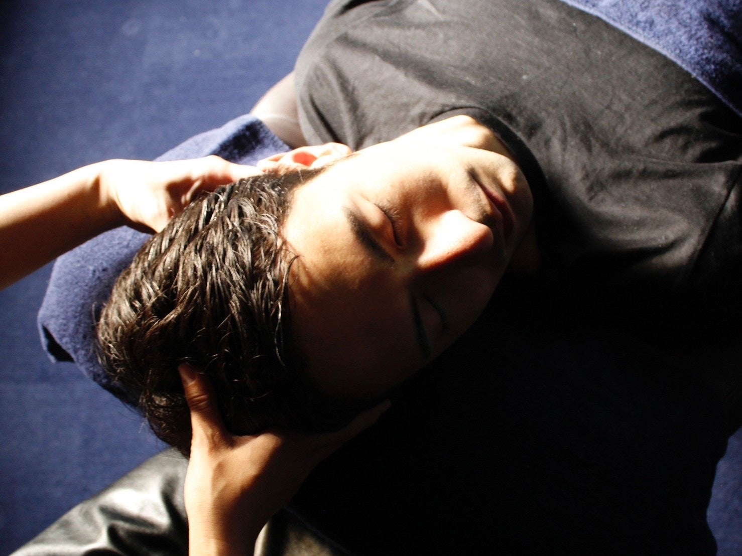 内容 | 施術用リクライニングチェアの下にDENBA Healthの専用マットが設置されています。ヘッドスパのリラックス効果をより高めるCBDオイルをお好みに合わせて濃度を選んでいただけます。 |