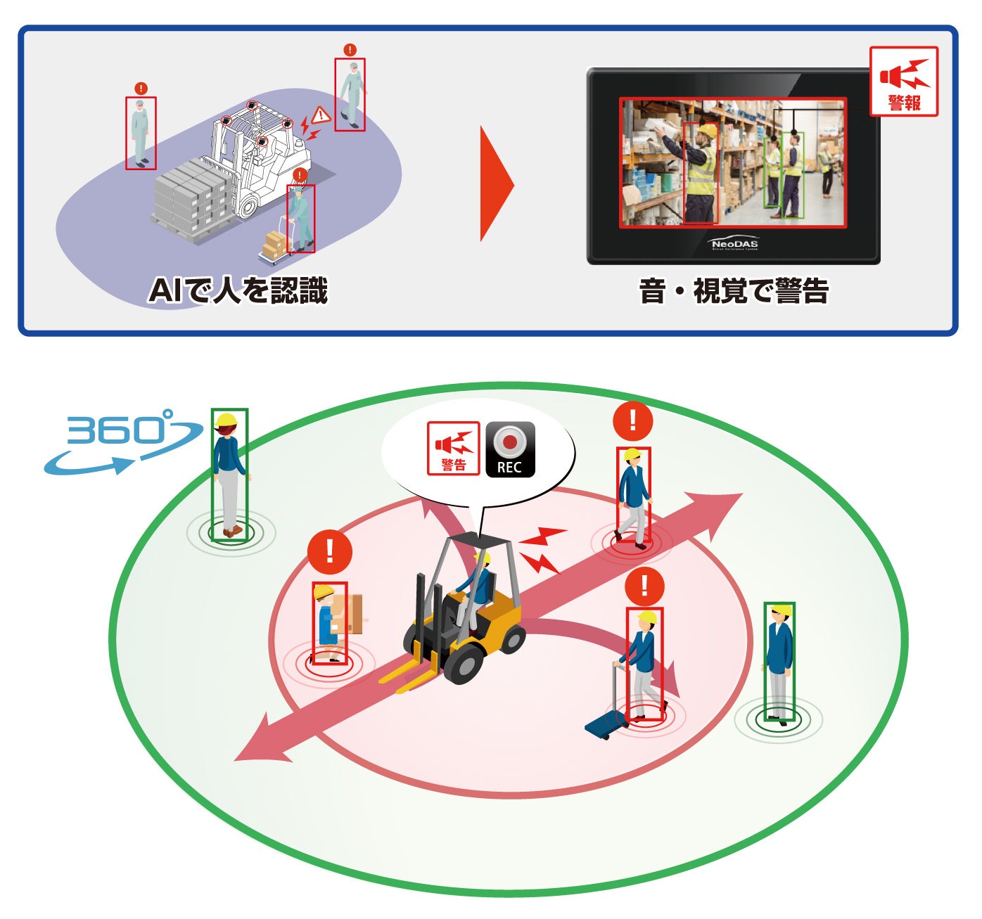 AIで人の接近を警告するフォークリフト用モニターシステム「人身事故防止AIカメラシステム QX」を発売