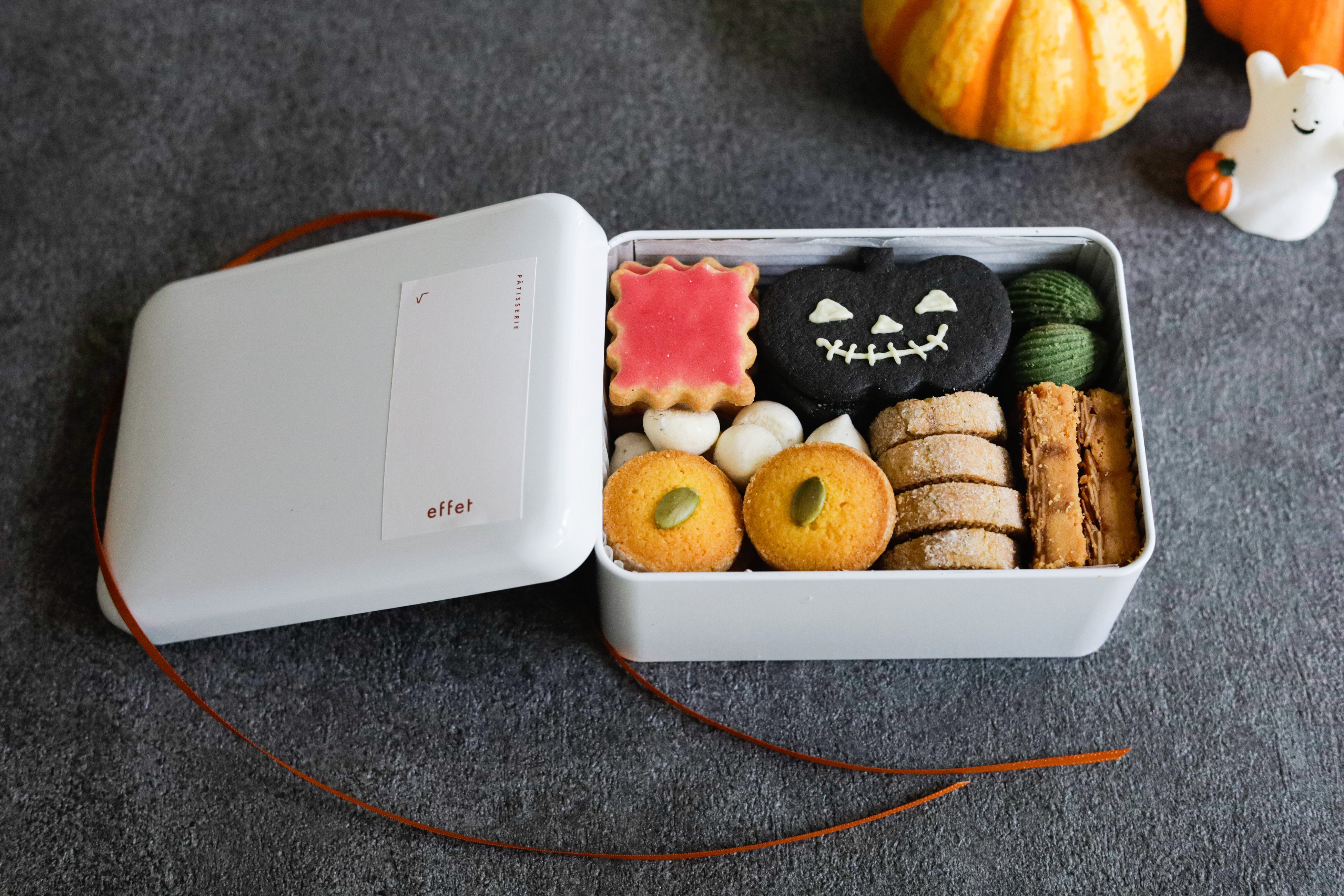 また、現在は期間・数量限定でハロウィンのクッキー缶もご用意しています!かわいい!