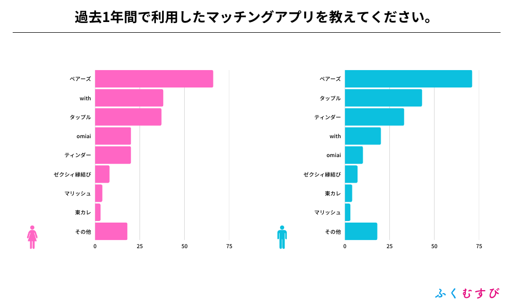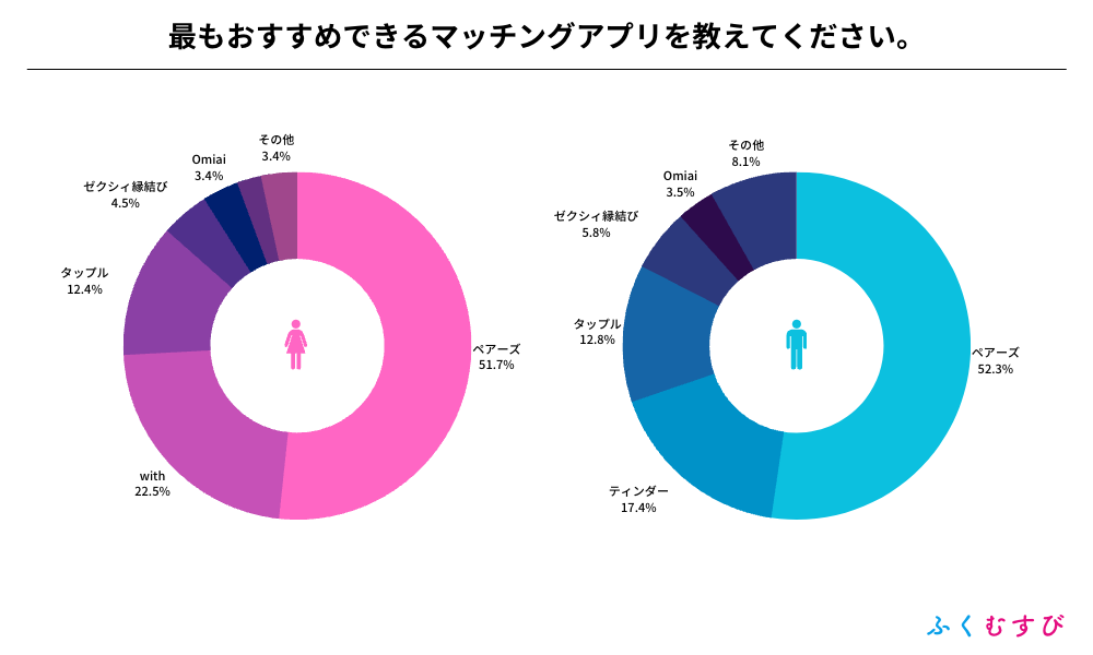 ・最もおすすめのマッチングアプリは、男女ともにペアーズが1位となりました。