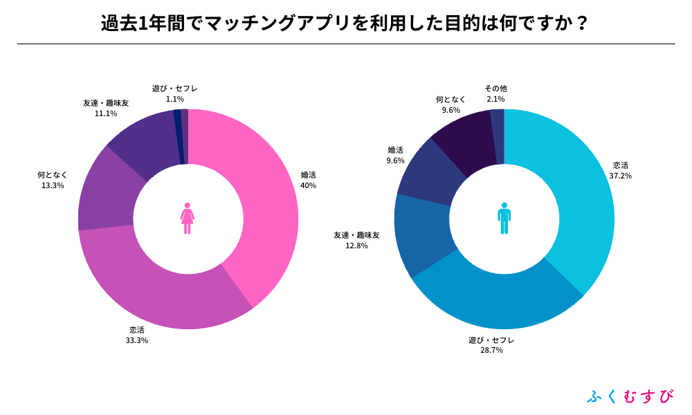 ・マッチングアプリの利用目的の1位は、男性が恋活、女性が婚活となりました。