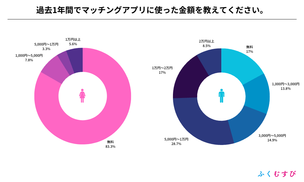 ・男性がマッチングアプリに使う金額は、5,000円〜1万円が最も多くなりました。