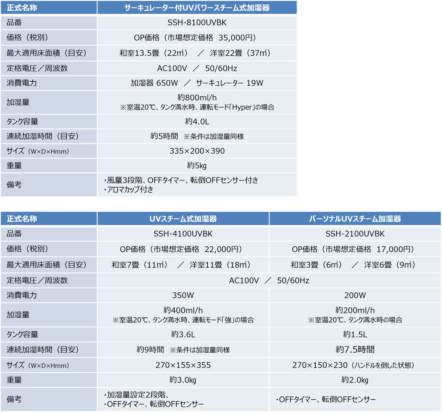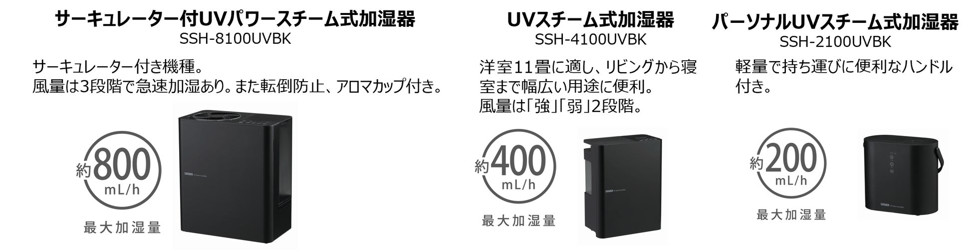 【UVスチーム加湿器シリーズ 製品情報】