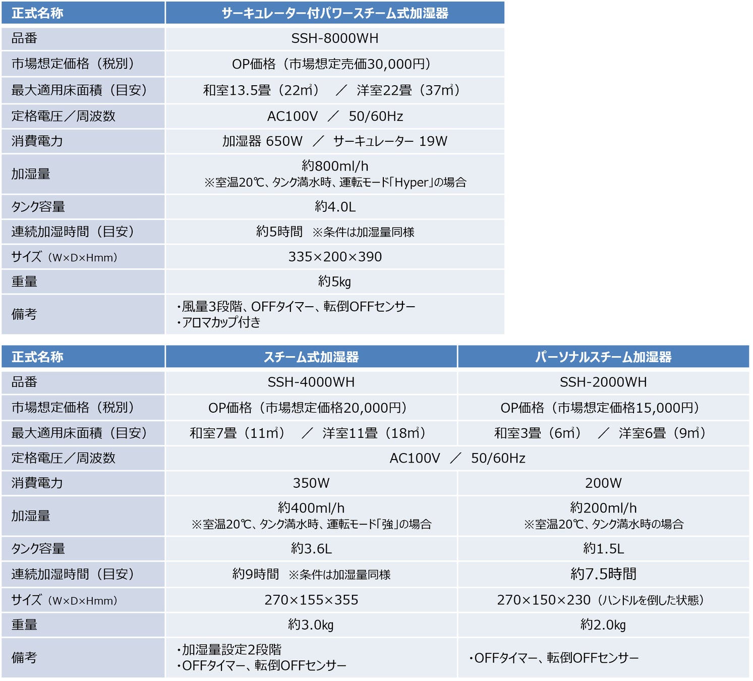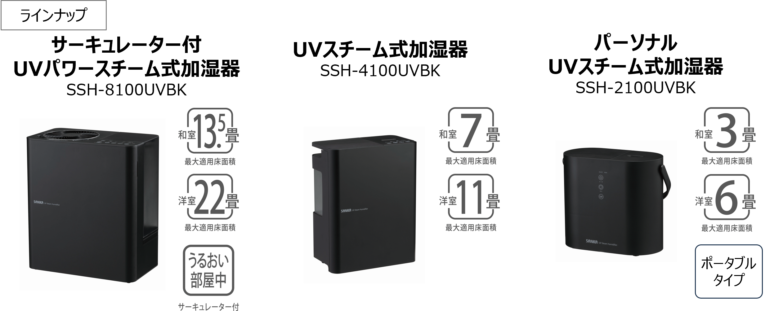 【スチーム式加湿器ラインアップ】