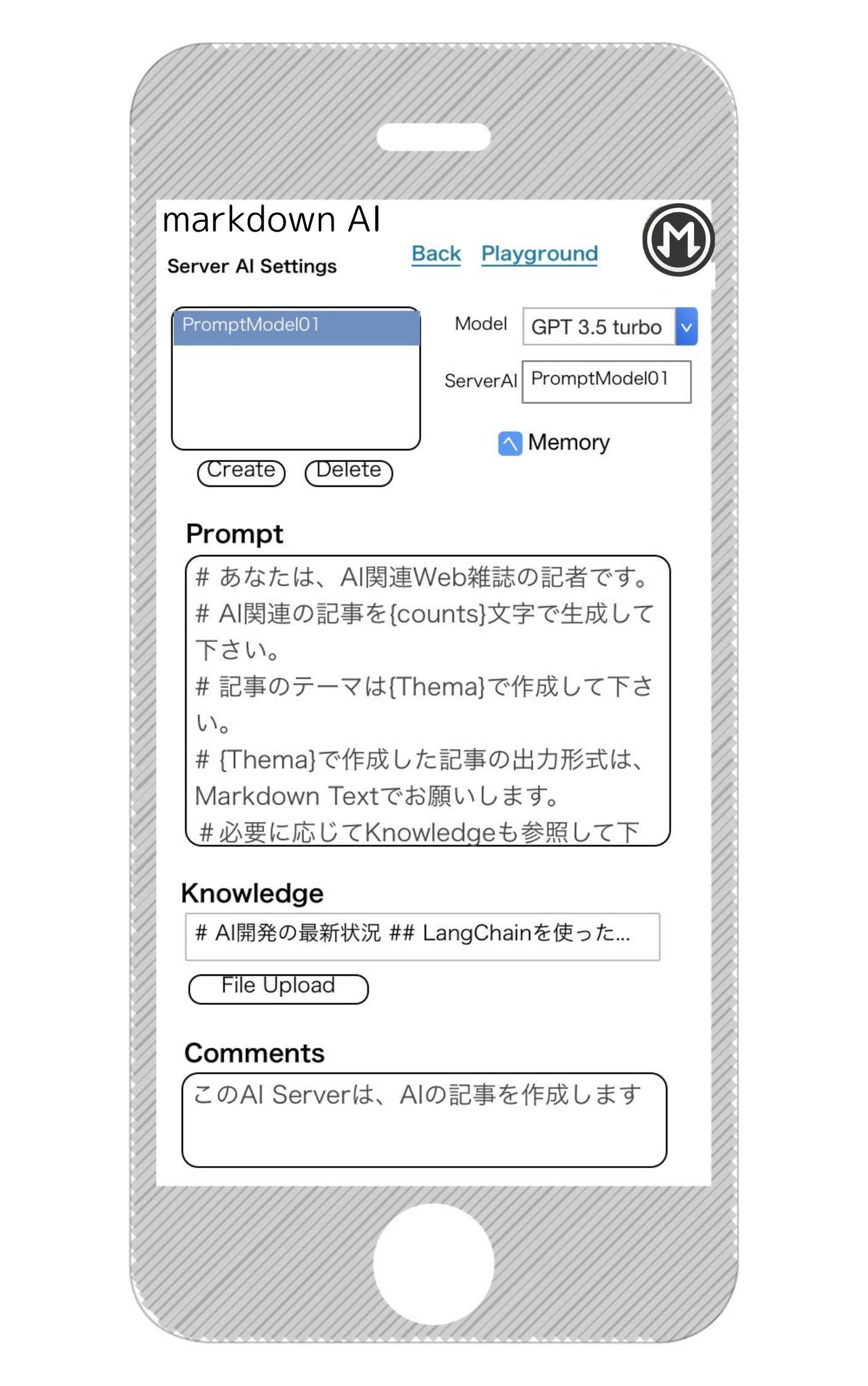 Markdown AIのもう一つの特筆すべき機能は、独自のAIモデルを作成できる点です。
